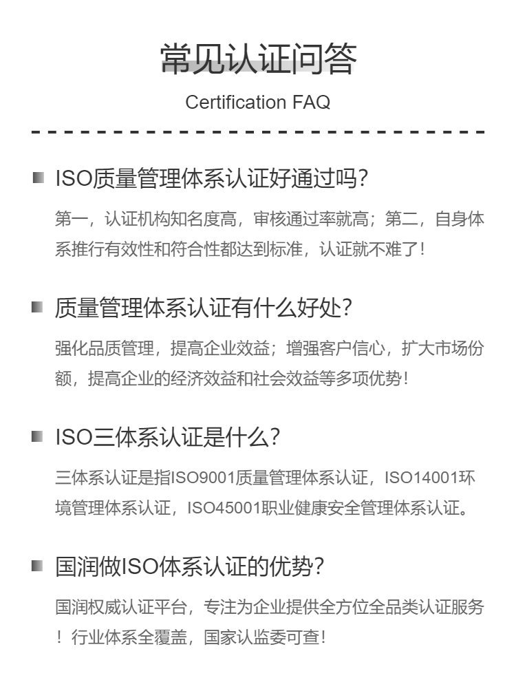 ISO系列体系认证 质量管理认证体系 一站式服务 专业快速
